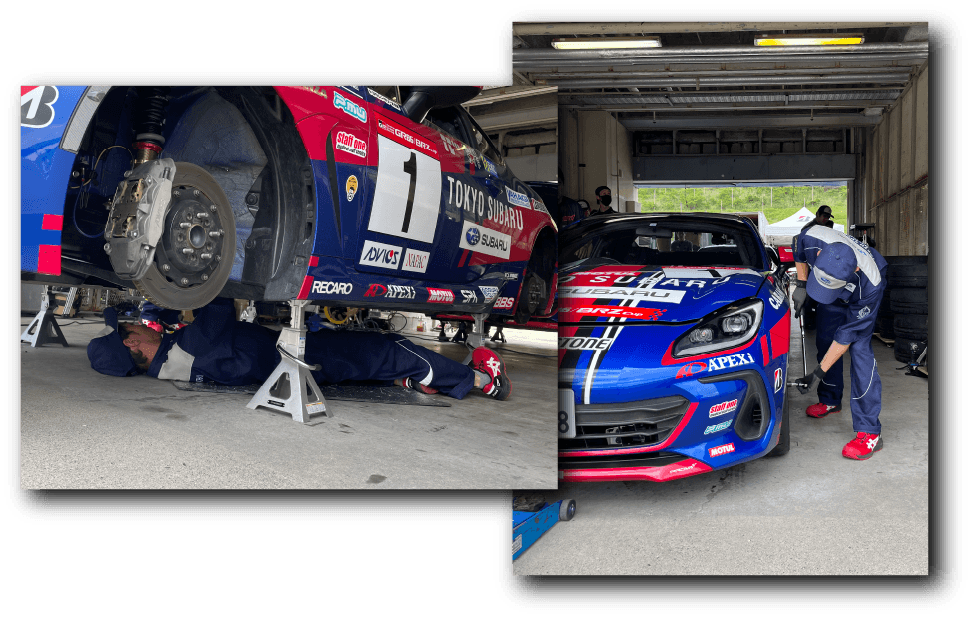 今回、オートポリスに派遣したメカニックは、杉山 晴流(青梅店)と田中 祐也(中野店)です。