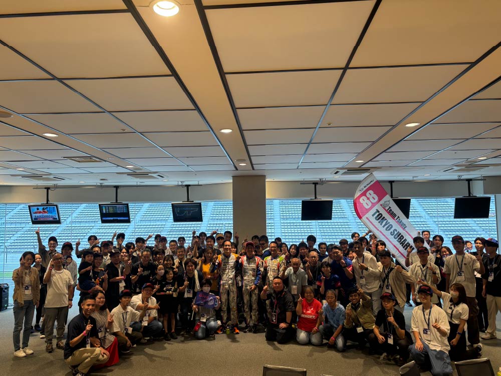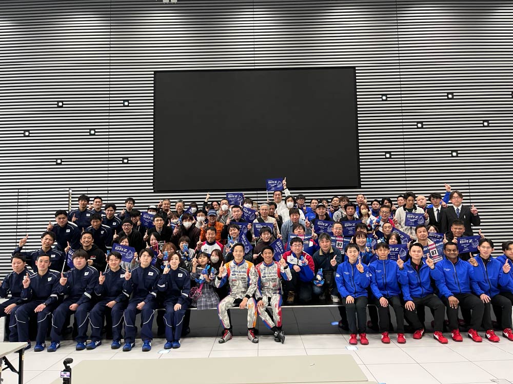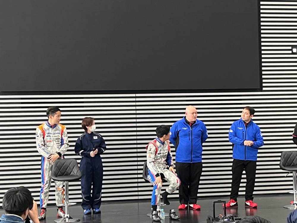 大勢のスバルファンで会場は満席。今シーズンもTeamTakutyと東京スバル(井口 卓人選手)、千葉スバル(久保 凜太郎選手)がタッグを組み参戦することと、新たに栃木スバル(奥本 隼士選手)が加わり3社でレースを盛り上げていくことが発表されました。