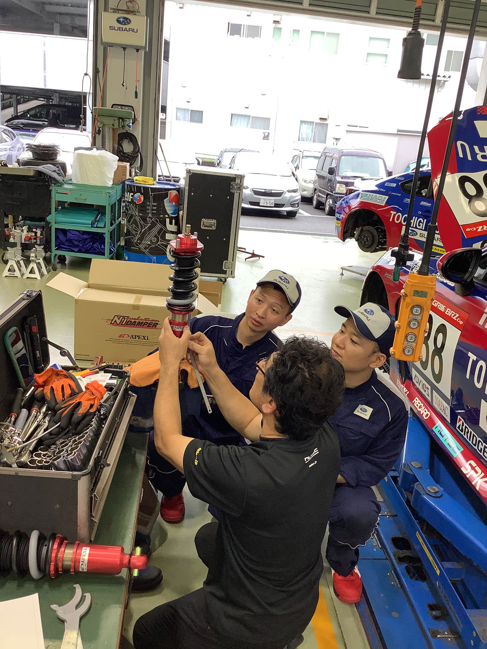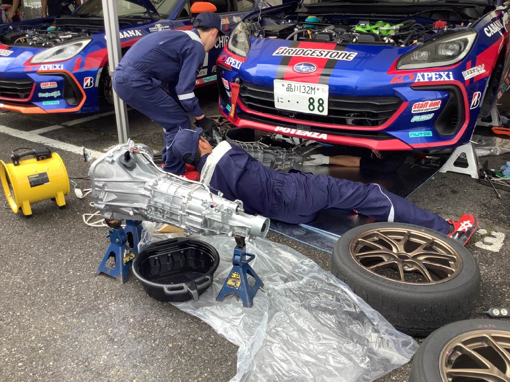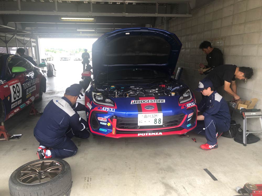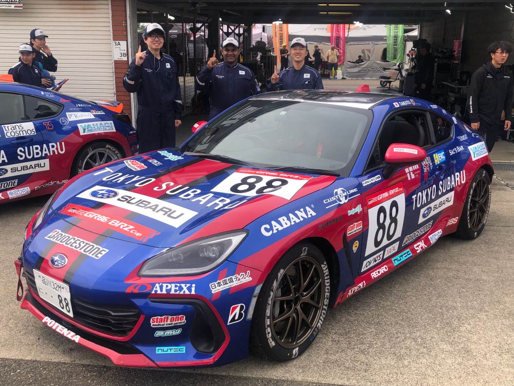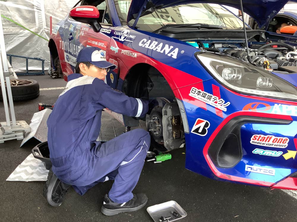 レースには、東京スバルの店舗で働いているメカニックの中から社内選考会を行い派遣し、レースで培った経験や技術力を、日々の業務に活かすことで、さらにお客様が安心できるメンテナンスを行って参ります。