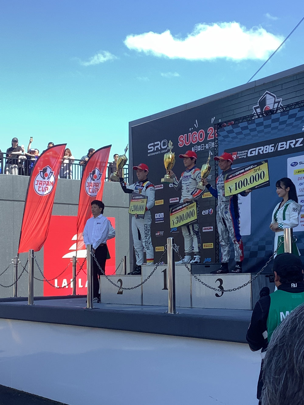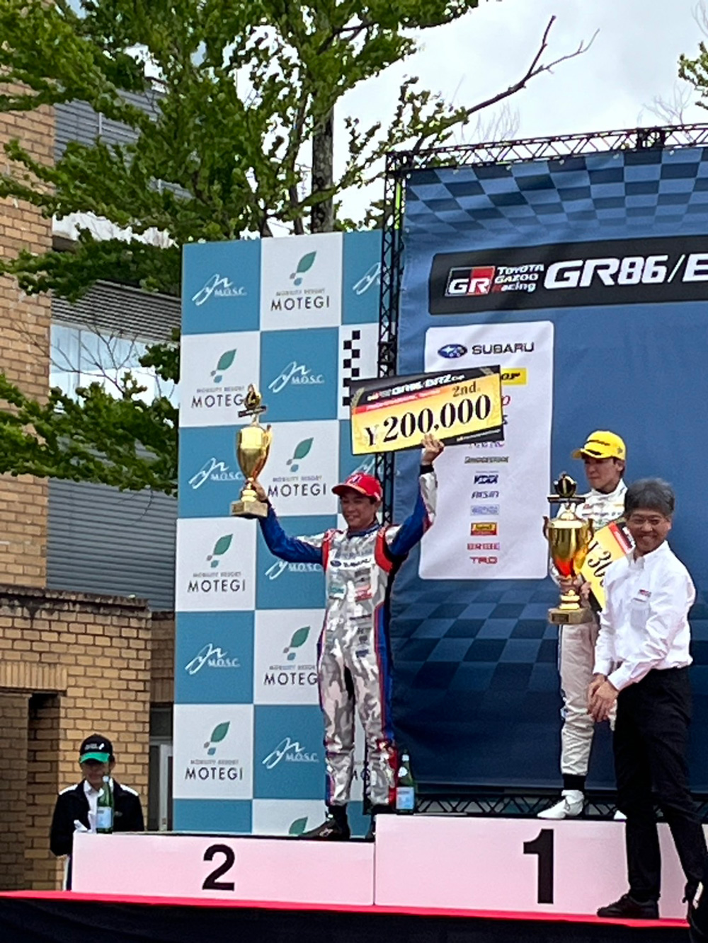予選では黄色旗が振られ多くの選手が記録無しの中、井口選手は決勝2番グリッドを獲得。予選前には派遣メカニックの渡邉 奏(本郷店)・長谷川 裕樹(町田店)でミッション交換作業を行い、本選を迎えました。決勝は2位でフィニッシュ、今期初の表彰台を獲得しました!