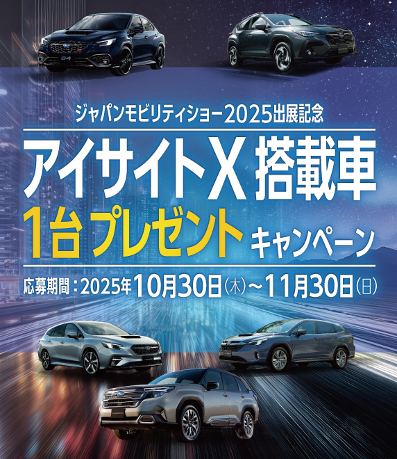 アイサイトX搭載モデルを抽選で1名様にプレゼント。さらに応募者限定で、購入資金が当たる試乗ご予約キャンペーンも実施中!