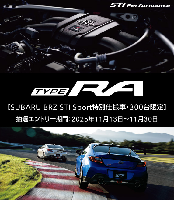 STIの技術を融合させ、走りへの情熱を惜しみなく注ぎ込んでつくり上げた、300台限定のコンプリートカー「TYPE RA」誕生。ご購入には、販売店での抽選エントリーが必要です。STIが鍛え抜いてきた走りの質感を、ぜひその手に。